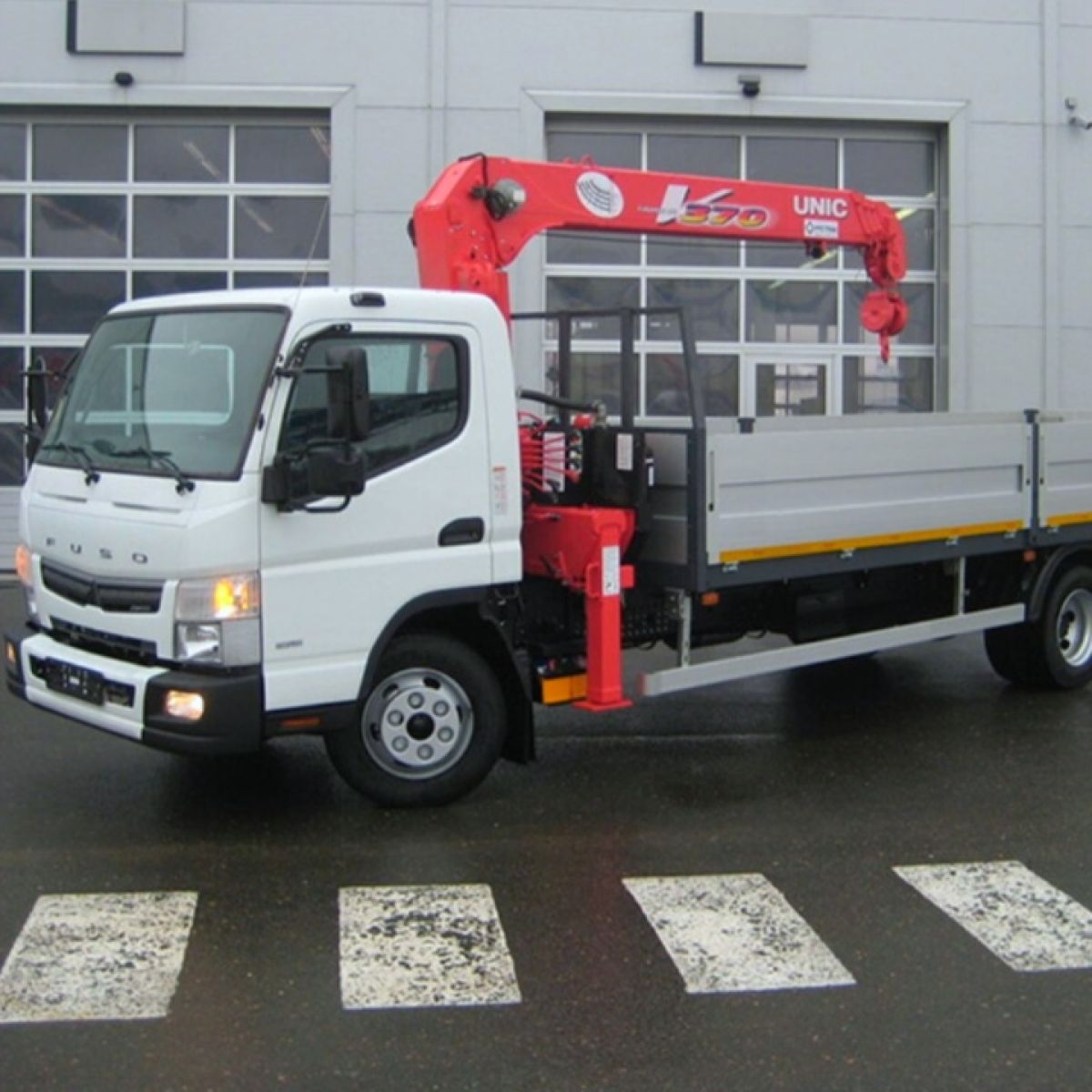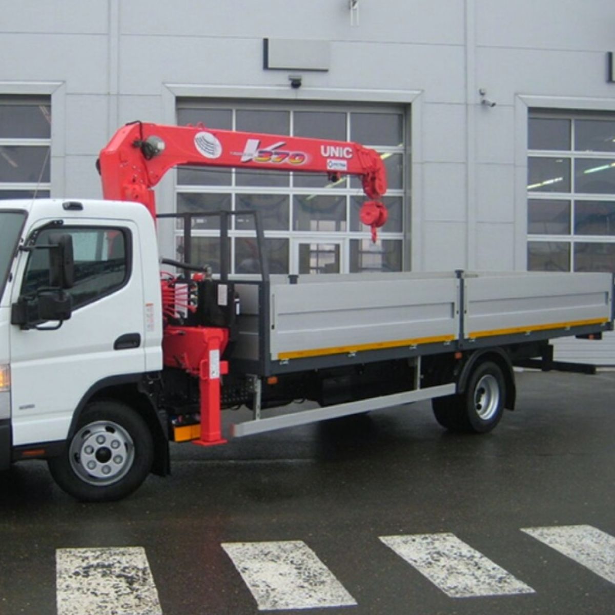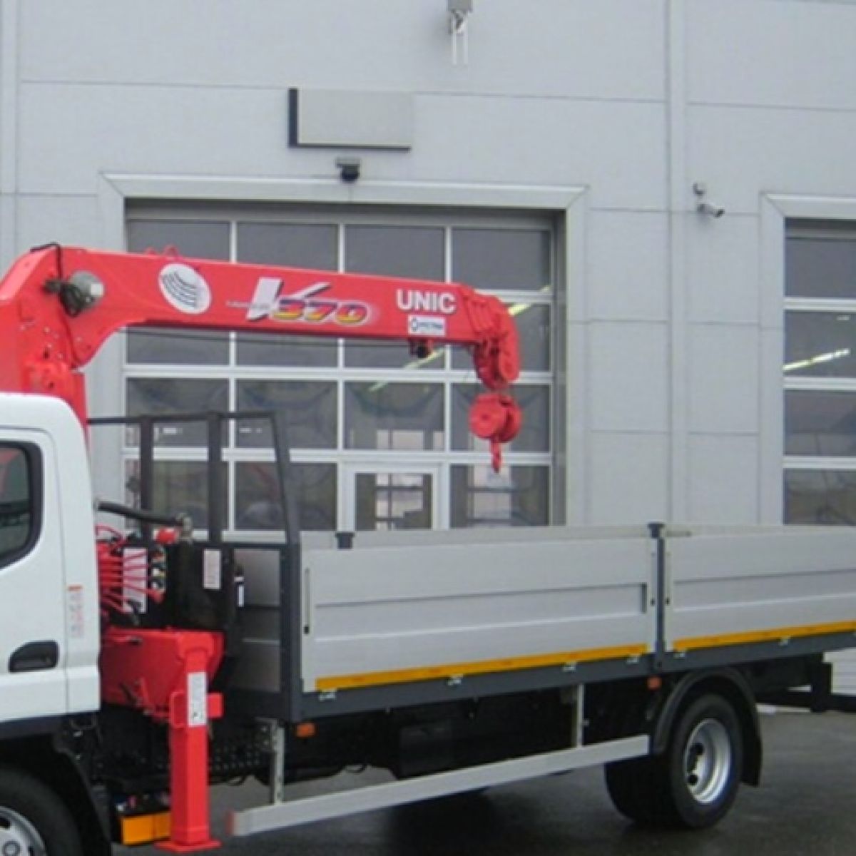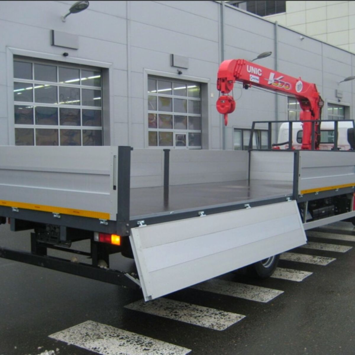 - Автомобиль оборудован КМУ с бортовой платформой